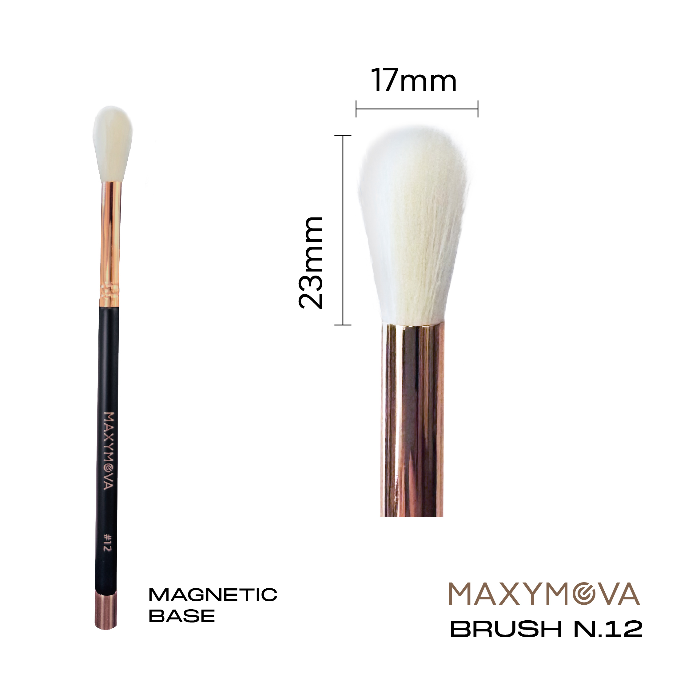 The Maxymova Brush 12 features premium synthetic bristles and a magnetic base for precise, effortless blending and convenient storage.