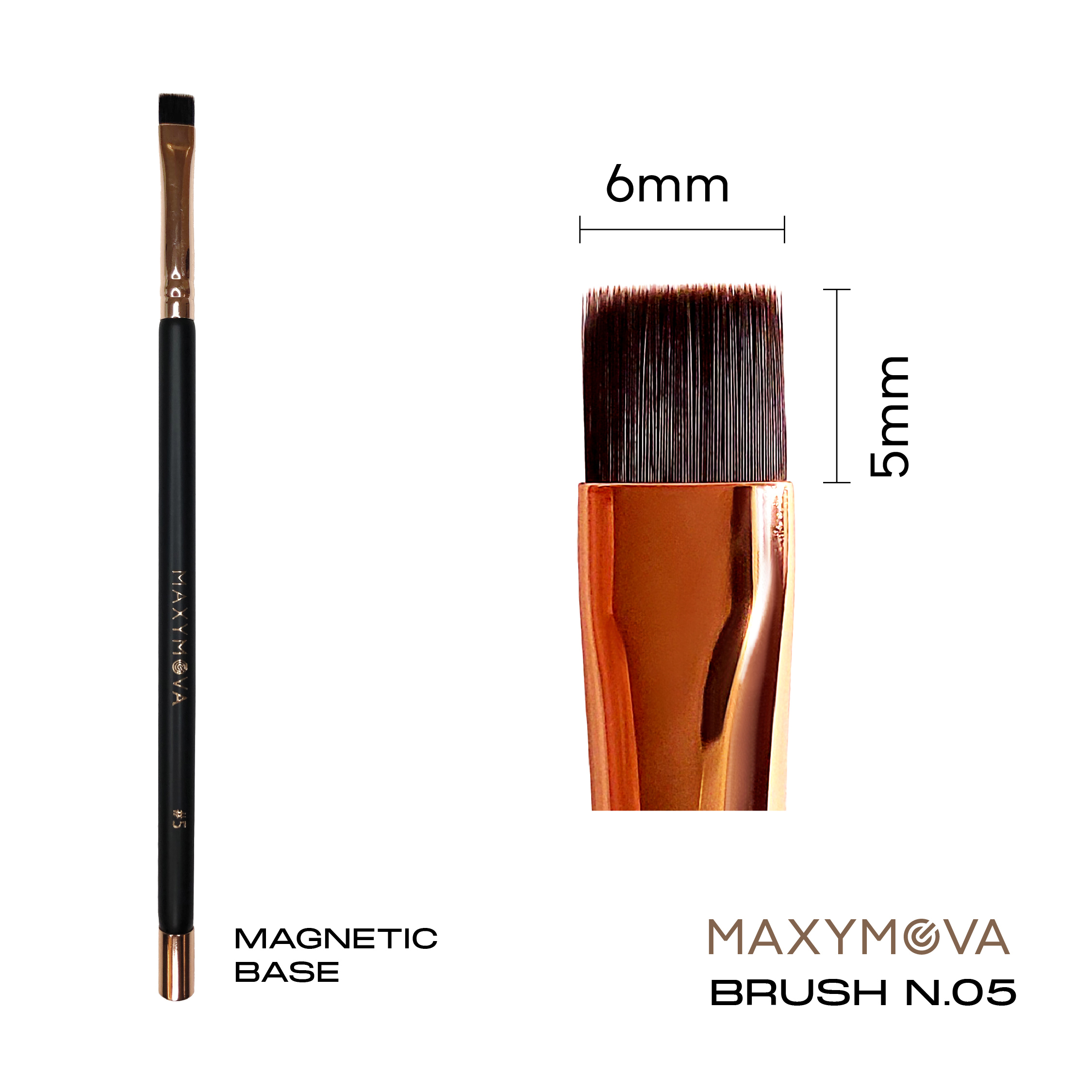 Professional Magnetic Brush No.5 – for Eyelash Tint and White Brow Paste Application In a world where eyebrows are everything meet the innovative Magnetic Brushes MAXYMOVA and achieve the eyebrow perfection! MAXYMOVA Magnetic Brush No.5 is a perfect brush to spread tint/henna onto the eyebrows and also for concealing under the brows at the end of treatment. It also can be used to apply mapping paste around the brows to showcase the shape of your client’s new brows. It has a magnet to keep it in the vertical position on the metal base (sold separately).